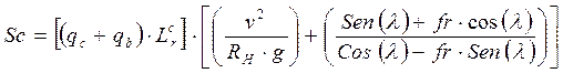 : ángulo que forma el tramo con respecto a la horizontal. Usualmente, el cálculo de la resistencia en un tramo de perfil curvo se realiza asumiendo que se conocen las tensiones de entrada SE y de salida SS en el tramo y SS mayor del 1 al 10 % de SE y entonces,