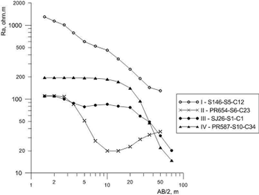 Los valores de resistividad eléctrica del horizonte inferior no exceden de 86 Ω·m, lo que se explica por el aumento del grado de humedad con la profundidad y, sobre todo, por la presencia de material arcilloso en la composición litológica de las diferentes formaciones geológicas del territorio.