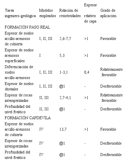 Debe señalarse que los referidos modelos de resistividad eléctrica superan en alcance las caracterizaciones por la resistividad eléctrica de formaciones geológicas individuales, al incorporar la dimensión de profundidad. Por otra parte, guardan relación con los modelos clásicos empleados en la solución de las tareas directa e inversa de la prospección eléctrica con corriente continua (Keller & Frischknecht 1966; Orellana 1982).