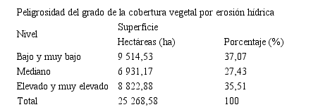 Debe considerarse que el control llevado a cabo por medio de la aplicación del SIG y las relaciones existentes entre las variables, muestran que, en general, los resultados atribuyen el grado de peligrosidad de erosión hídrica al uso no adecuado del suelo.