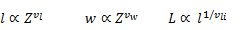 (11)En estas ecuaciones Vl y Vw representan los exponentes de escala en las direcciones longitudinal y transversal, al tiempo que ly w son los tamaños característicos de la red en las direcciones mencionadas; de forma práctica los exponentes de escala se calculan como: