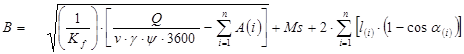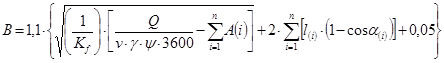 En este caso el área de la sección transversal de la carga en la banda se determina en función del ancho de la banda B, la longitud del rodillo lr y la altura de la sección sobre la banda h. Los valores de K varían de 115 a 300 para φ de 10o a 25o.