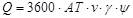 función del área total de la sección transversal del flujo de carga (AT; m2), de la velocidad de