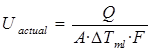 (5)Los coeficientes de transferencia de calor actuales se pueden calcular mediante la ecuación 6, obtenida al despejar en la ecuación 1. En el caso de intercambiadores con tres fluidos y dos vías principales de intercambio térmico se determinan dos coeficientes globales de transferencia (Peigné et al. 2013; Ghiwala & Matawala 2014; Saurabh et al. 2016).