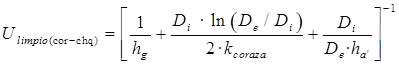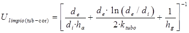(6)Las expresiones 7 y 8 se emplean para la determinación teórica de los coeficientes globales de transferencia en intercambiadores de calor, asumiendo que están exentos de impurezas (Kakaç & Liu 2002; Kerner 2011; Ghiwala & Matawala 2014).