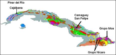 En las áreas de estudio se encuentran rocas ultrabásicas del cinturón ofiolítico que bordea la isla de Cuba por su costa norte, por aproximadamente 900 km (Cuador-Gil 2002); el cual es uno de los más largos en todo el mundo y tiene asociados grandes yacimientos de corteza de intemperismo de menas lateríticas ferruginosas, niquelíferas y cobaltíferas. La distribución de rocas ultrabásicas no es homogénea en todo el cinturón, sus relaciones con las rocas de cobertura platafórmica a veces son muy complejas.
