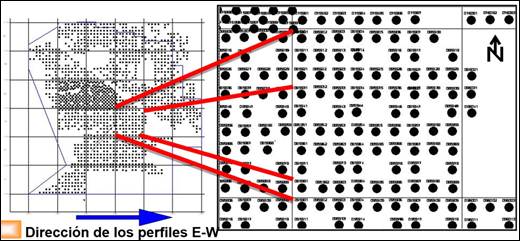En todos los casos, la orientación de las líneas AB de alimentación o energización del terreno se hizo coincidir con la orientación E–W de los perfiles de medición de otros métodos geofísicos y la orientación de los pozos perforados en la red de exploración (Figura 3).
