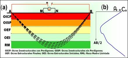Cuando las potencias de los OICP, OISP y OEF (secuencias lateríticas) son pequeñas (menores que tres metros, aproximadamente) el SEV-PI los refleja como una sola capa y la curva adopta la forma del tipo “A” que se ilustra en la Figura 6.
