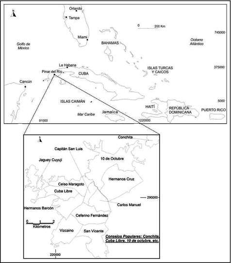 La investigación se enfoca en la ciudad de Pinar del Río, principal centro administrativo y político de la provincia; con una población de aproximadamente 150 000 habitantes. Los límites de la ciudad son irregulares, cubre una superficie de 31,0 km2 y las coordenadas geográficas de su centro son: latitud norte 22°25' y longitud este 83°42' (Figura 1).