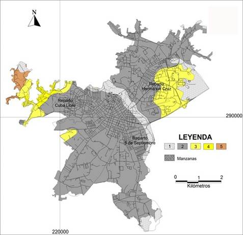 Cada uno de los TIG identificados en el área y representados espacialmente en las Figuras 4, 5 y 6 tendrán diferentes niveles de influencia en la ocurrencia de fenómenos generadores de riesgos geológicos en el entorno urbano objeto de estudio. En este trabajo no se pretende elaborar mapas de peligrosidad a la ocurrencia de algún fenómeno geológico-geotécnico específico, generador de riesgos; simplemente se demostrará la predisposición de los TIG identificados a la ocurrencia de los citados fenómenos.