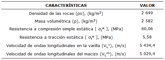 Velocidad de las ondas elásticas longitudinales en muestras grandes (VL): Se comprobó en una varilla larga y fina y en el macizo, por medio del equipo de ultrasonido Litienov, de procedencia Rusa.