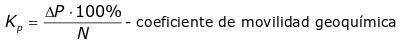 El coeficiente de movilidad geoquímica relativa es una ecuación que, sobre la base de los análisis químicos, permite cuantificar la cantidad del componente que se lixivia o concentra, teniendo en cuenta los pesos volumétricos y asentamientos de los productos del intemperismo, en porcentajes de la cantidad absoluta de este componente en la zona inicial.