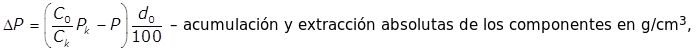 Observaciones: *: Contenido en % (P); Concentración en g/cm3 (N); Acumulación-extracción en g/cm3 (ΔP).