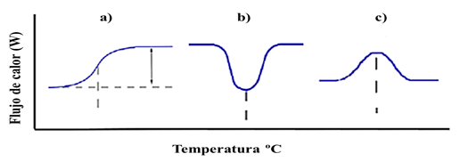 Los principales eventos que se identifican con el análisis de las curvas obtenidas con el DSC son el punto de transición vítrea (Figura 1 a), la cristalización (Figura 1 b) y la fusión (Figura 1 c) según lo mostrado en la Figura 1 (Zaccai et al. 2018; Akash & Rehman 2020).
