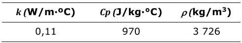 Estos valores se obtuvieron a través de un análisis térmico basado en la medición de la distribución radial de la temperatura. En ese caso se tomó una muestra de mineral laterítico reducido el cual fue colocado en un cilindro y calentado mediante una resistencia situada en su eje central. Mediante termopares, se midió periódicamente la temperatura para cuatro radios internos del cilindro y se calculó para cada radio la conductividad térmica y el calor específico. Es importante destacar que a pesar de que el mineral laterítico reducido es un producto que se obtiene del tratamiento de las menas lateríticas ambos materiales tienen diferentes características físicas.