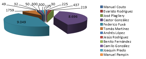 Otros, tras acumular una suma de dinero que les permitió deslizarse hasta el sector terciario como representantes del comercio, invirtieron en la explotación de yacimientos mineros, aquellos que inicialmente le habían dado el sustento. En tales prácticas se destacaron particulares hispanos como lo muestra el gráfico a continuación: