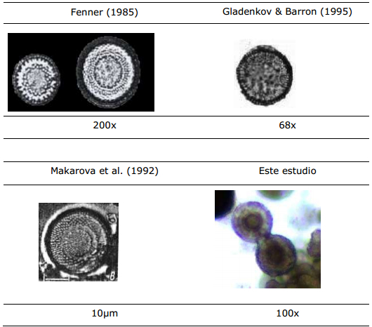 El taxón determinado en este trabajo se corresponde con la especie descrita por Fenner et al. (1978); Fenner (1985); Gladenkov & Barron (1995), Makarova et al. (1992).