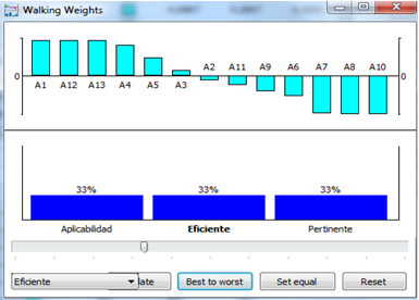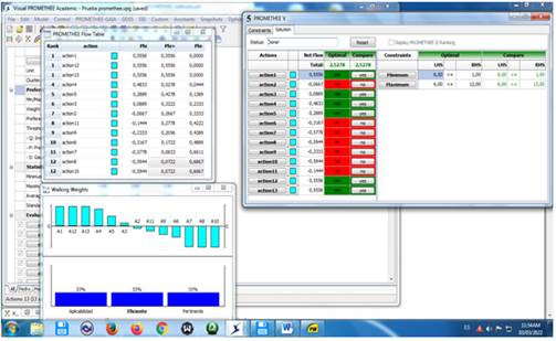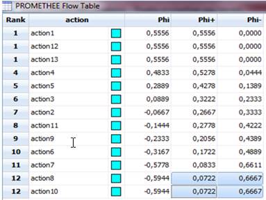 La aplicación del software PROMETHEE para la valoración de las 13 acciones permitió discriminar y definir las acciones óptimas, imprescindibles para la conservación y protección de la estabilidad estructural del puente y las que no tienen relevancia, según se muestra en la secuencia en las Figuras 8, 9, 10 y 11.