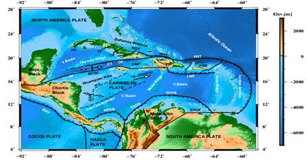 La región suroriental de Cuba constituye la zona de mayor peligrosidad sísmica del país (Álvarez, Lindholm y Villalón 2016). Por su ubicación cercana a la frontera de la placa del Caribe con la placa de Norteamérica (Figura 1) ha sido afectada por los terremotos más significativos que han ocurrido en Cuba a lo largo de la historia (Cotilla y Córdova 2010a, 2010b; Cotilla 2003). La sismicidad se concentra a lo largo de la falla Oriente donde principalmente predomina un movimiento lateral de rumbo con transtensión en la cuenca de Cabo Cruz y comprensión en el cinturón deformado de Santiago (Moreno, Grandison y Atakan 2002; Calais y Mercier de Lepinay 1991). Esta zona de falla puede generar terremotos de magnitudes superiores a 7, lo cual ha ocurrido en el pasado con al menos 2 terremotos fuertes en 1766 y 1852, ambos ubicado en la vecindad de la ciudad de Santiago de Cuba.