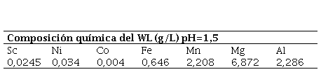 La composición química del WL analizada por ICP para la determinación de escandio y por EAA para el resto de los metales se observa en la Tabla 2.