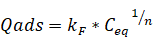 El modelo clásico de Freundlich está descrito por la ecuación 3.