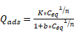 El modelo de Langmuir-Freundlich es una combinación de ambos, por lo que representa una adsorción mediante una combinación de mecanismos sobre materiales heterogéneos. La ecuación 4 describe este modelo.