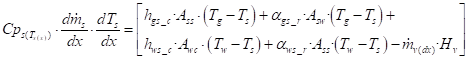 Los términos T., T. y T. son las temperaturas del gas, de la mena y del gas a la pared (W/(m.·K));