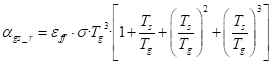 es la emisividad efectiva. Considerada por Agustini (2006) como un parámetro, que toma valores entre 0,5 y 0,35 para temperaturas del gas de 1 273 K y 2 273 K, respectivamente, y depende del diámetro del horno, la concentración de gases de la combustión, del polvo, el hollín, la emisividad del gas y la emisividad de la superficie.