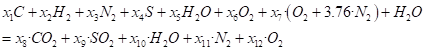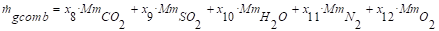 A partir de la conservación de los átomos de los elementos químicos que componen la ecuación 1 se calculan los productos de la combustión y el flujo de los gases de la combustión