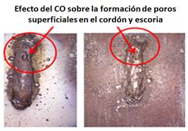 Sobre este resultado hay que considerar como una posible causa que el concentrado de vanadio utilizado como carga de aleación se encuentra en forma de óxidos de vanadio, de hierro u otro, lo que implica que los procesos de reducción por el C en el baño fundido generan considerable cantidad de CO, el cual queda atrapado en el metal del cordón de soldadura durante la solidificación.