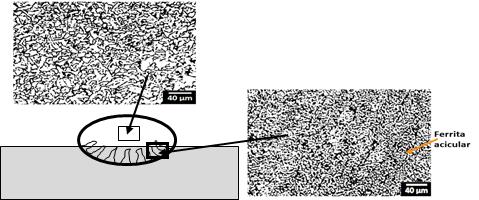 Por otra parte, la formación de la ferrita en la microestructura en el centro del cordón está también favorecida por la presencia del Cr y el bajo contenido de C, el cual reduce la trasformación de la austenita a perlita durante el enfriamiento (Denise, Susanne y Christian 2017).
