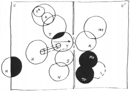 La dispersión es, materialmente hablando, la consecuencia del desorden que queda después de la desaparición de una persona. En el caso concreto de las cartas se intenta (re)construir su secuencia y la correspondencia con otras personas, igualmente ausentes e, incluso desconocidas (como ‘S’, sin ir más lejos)13. Esas conversaciones fragmentadas operan como los conjuntos de Venn, estableciendo todo tipo de relaciones (de inclusión, disyunción, intersección e intercambio) siempre enigmáticas para quien intenta recomponer los diálogos que alguna vez entablaron. Es más, según la narradora, escribir cartas es, paradójicamente, una forma de desaparecer, porque: “Todo lo que escribimos termina por borrarse, creo Yo (Y)” (137). Por todas estas razones, la correspondencia es un elemento más de la construcción laberíntica del relato en Conjunto vacío, agudizando al mismo tiempo la caótica presencia de lo ausente.