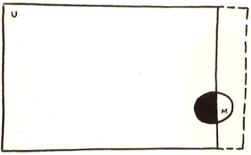 La novela en su conjunto consiste en una reflexión sobre el concepto de desaparición, ilustrado y definido frecuentemente en el texto, y en su primera aparición descrito como: “El espacio que Mamá (M) debía ocupar estaba vacío, nos había dejado un pedazo de hueco, y el resto estaba fuera del Universo (U) visible, en un lugar desconocido” (19). Ver figura 214.