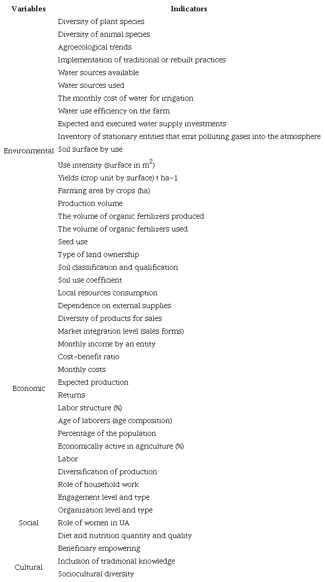 Clavijo and Cuvi (2017) evaluated the sustainability of urban and peri-urban gardens through indicators, following the method suggested by Sarandón et al. (2006) and Sarandón and Flores (2009). In turn, they used several indicators suggested by Blixen et al. (2007) to evaluate the sustainability of urban and peri-urban agriculture (UPA).