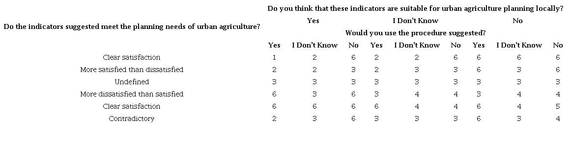 A questionnaire was designed to evaluate satisfaction through the urban agriculture indicators in territorial planning. The answers were processed using the Iadov technique (Kuzmina, 1970, cited by Fernández et al., 2020).