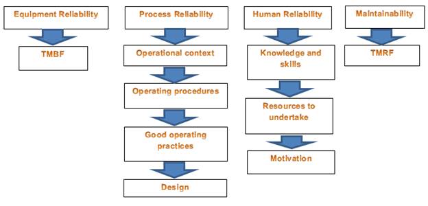 To management to do a high operational reliability is necessary that the processes are characterized by securing the required production with reasonable total costs due to minimal occurrence of failures, plans to ensure the established production, risks to an acceptable level and a highly motivated 6 .To evaluate the operational reliability of a system or process any is necessary the analysis of the elements that form, on which to act if we want to achieve long-term continuous improvement is necessary. In the figure 1 to supply a representation of these elements.