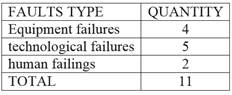 They based work orders generated for reactive corrections in a period of two years (both before the study years), they were classified as equipment failures, failures of processes and technological and human failure, identifying one total of 11 faults distribution as shown in table 1.