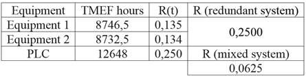 Table 3 shows the result of calculating the reliability of a redundant system process (Team 1 and Team 2) and mixed regarding the programmer. By being configured in series and present 5 trouble shooting, system reliability decreases to 6% for the same time considered.