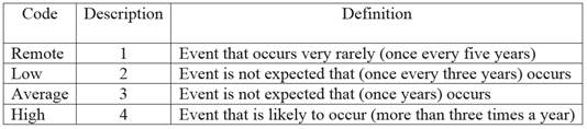 Table 4 shows the classification of the likelihood of human error and the corresponding definition to each base for later risk analysis.