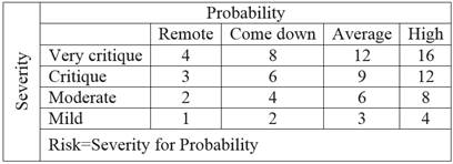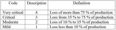 In the case studied, the severity causing a failure is considered mild, causing losses to less than 10 % of production, which receives code 1 as the assigned value (Table 6).