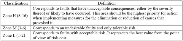 Table 7 shows the 3 zones established risk limits that frame each and its corresponding definition.