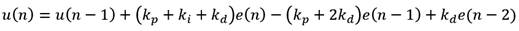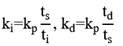 [10]Para una aplicación más simple dentro del sistema, la ecuación 10 se simplifica a la expresión mostrada en, usando los conceptos planteados en y estimando la ganancia integral (ki), y la ganancia derivativa ( k d ) como se observa en la ecuación 12.