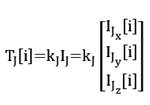 [2]Para modelar el joystick, el dispositivo se consideró como un mecanismo de 3 DOF, complementando el movimiento de la palanca bidimensional con una que se mueva en un solo eje. La información obtenida del dispositivo es multiplicada por un factor incremental ( k J ), puesto que el valor de la señal era diminuto respecto a los valores trabajados por el manipulador. De esta forma, la posición final del joystick para cada instante de tiempo i (TJ[i]) está dada por la ecuación 3, donde IJ es la información obtenida del equipo de control en cada período.