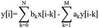 Basados en la investigación realizada en 11, donde se afirma que la banda de trabajo del temblor fisiológico está dentro del rango de los 6 a 13 Hz, se propuso un filtro Butterworth pasabajos con una frecuencia de corte igual a 8 Hz. Usando la expresión de la ecuación 4, donde se expone una función generalizada de los filtros en términos de una ecuación diferencial, fueron calculados los coeficientes ak y bk de cada uno de los términos cuando el filtro es de grado 3.