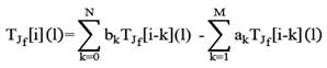 [4]Para el cálculo de los términos, se aplicó el procedimiento propuesto en 12, quienes proponen un método que diseña los filtros Butterworth de forma generalizada. Combinando la ecuación 4 con la matriz de transformación homogénea final para cada instante de tiempo del