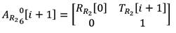 [8]Tomando la ecuación 2 y la ecuación 8, la matriz homogénea para R2 es (ecuación 9):