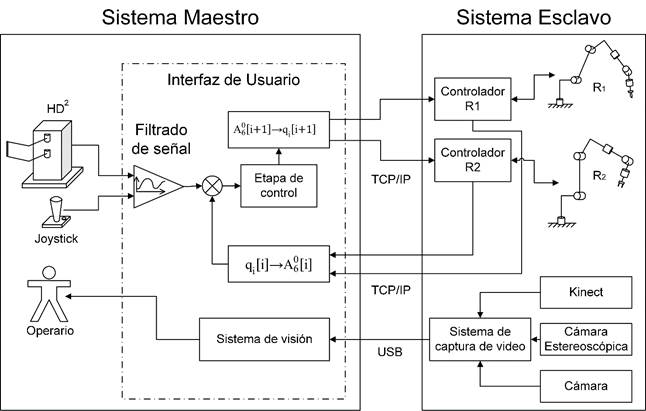Es por eso que se hace necesaria la construcción de nuevas plataformas para realizar el entrenamiento a los residentes, utilizando brazos manipuladores industriales que trabajen entre sí de forma cooperativa. Para controlar en tiempo real los movimientos de los manipuladores, el sistema debe ser de tipo maestro-esclavo, mientras que un sistema de visión ubicado dentro del área de trabajo de los robots, se emplee para captar las diferentes posiciones en planos proyectados. Todo este sistema se debe controlar desde una interfaz de usuario que interactúe con el usuario y permita supervisar los dispositivos, aún sin estar la estación maestro en el mismo sitio de la estación de trabajo.