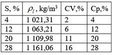 Se indica que existe una probabilidad del 95 % de que si se realizan las mediciones de la densidad del sólido bajo condiciones similares a las que existieron en este trabajo el resultado se obtenga en el rango de 1,599 a 2,374 g/cm3, con valor para la media aritmética normal de 1,982 g/cm3.Se determinó que el proceso de medición para la determinación de la densidad del lodo también se realiza bajo control estadístico, lo que permitió plantear que la densidad del lodo es de 1,021 g/cm3, con una probabilidad de ocurrencia del 95 %. La tabla 3 muestra los valores de la densidad del lodo, de la concentración volumétrica y en peso obtenidos a cada porciento de sólido, utilizando las ecuaciones 1, 2 y 3 expuestas anteriormente. La densidad para el 4 % de sólido se determinó de la muestra de lodo tomada en la tubería de descarga de la planta, mientras que las correspondientes a 12, 20 y 28 % de sólido se obtuvieron de las muestras preparadas con fines experimentales.