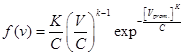 La función de distribución de probabilidad es una función continua, centrada específicamente para proyectar las velocidades de viento y lograr un mejor aprovechamiento del mismo, para la generación de energía eléctrica o mecánica. La flexibilidad, sencillez y confiabilidad que posee el modelo, se debe a los parámetros de forma K y de escala C, que determinan las características, ajustándose a los datos experimentales, como lo muestra la siguiente ecuación 28:
