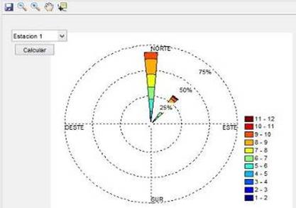 Una vez realizada la modelación matemática de la proyección de los datos de la velocidad, el Guide muestra la rosa de viento, figura 5, definiendo la dirección del viento predominante para cada estación analizada.